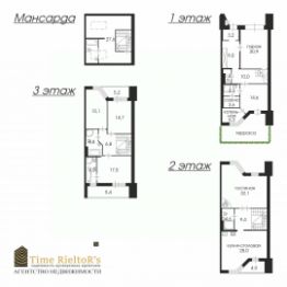 На 1 этаже гостиная со вторым светом 30,5 м (6 метровые потолки), кухня- столовая 30,8 м, кабинет и выход на уютную террасу, которая находится во внутреннем закрытом, озелененном дворе дома.