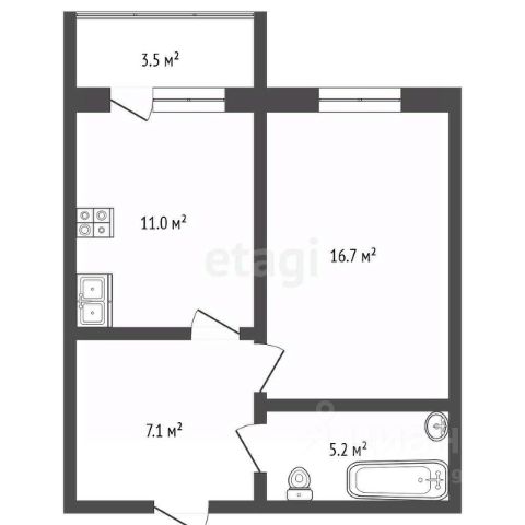 Остекленная лоджия 1,7 м2, утеплена и соединена с кухней. Теплый двухкамерный стеклопакет. Пол - кварцвинил и теплый пол.