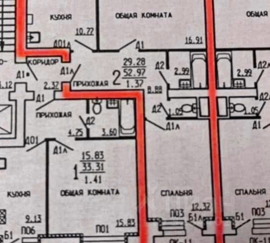 большие и светлые кoмнaты: 29,6 кв.м.и 16,9 кв.м.