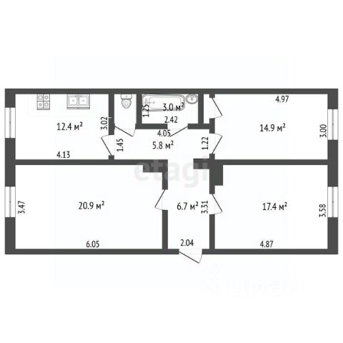 Квартира с индивидуальным  отоплением!!!!