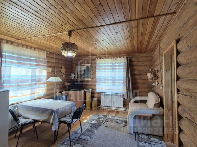 Дом построен из оцилиндрованного бревна, межвенцовое утепление из пакли. Окна - деревянные стеклопакеты с москитными сетками и привычной фурнитурой, как на ПВХ производства "Тамак". Крыша - металлочерепица, нигде не течет, покрытие качественное, при просмотре это возможно увидеть. Имеются надворные постройки в виде гаража и уличного туалета (на всякий случай). Участок огорожен со всех сторон металлопрофилем, ландшафт участка очень интересен, в некоторых местах имеются возвышенности, пни, растут хвойники, ели, дубы, туи, цветы, газон. Участок очень ухоженный, имеется возможность заехать на участок с 2-х противоположных сторон, с обеих есть ворота. Дом зимой и в холодное время отапливается, используется, как дача. В 12 минутах ходьбы от дома пляж, обустроенный, чистый. Еще чуть дальше находится храм, и еще один пляж с пристанью для катеров и гидроскутеров.