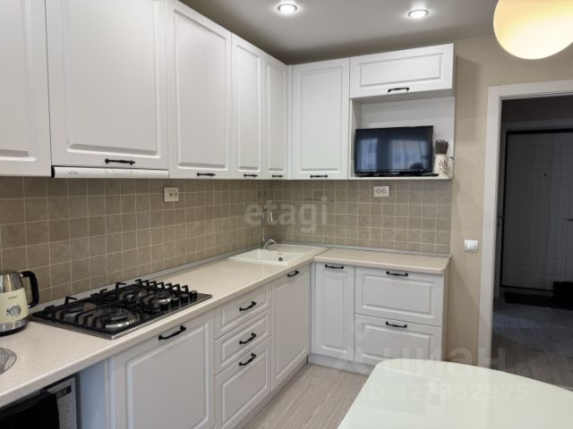 Остекленная лоджия 1,7 м2, утеплена и соединена с кухней. Теплый двухкамерный стеклопакет. Пол - кварцвинил и теплый пол.