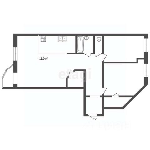 Зал (гостиная, 18 м2) - просторный и светлый, где легко помещаются и диванная зона, и рабочее место, и даже небольшой спортивный уголок.
