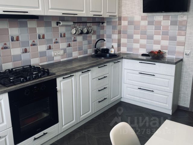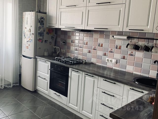 На кухне керамическая плитка, подогрев пола. Кухонный гарнитур на заказ. Выполнен по индивидуальным размерам, много ящиков, продумана эргономика. Столешница в хорошем состоянии.