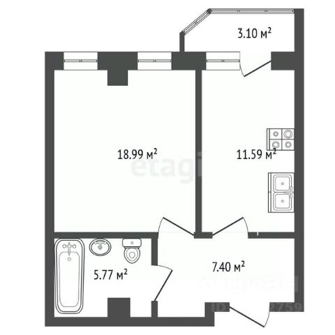 Общая площадь квартиры: 29,9 м2, из которых: