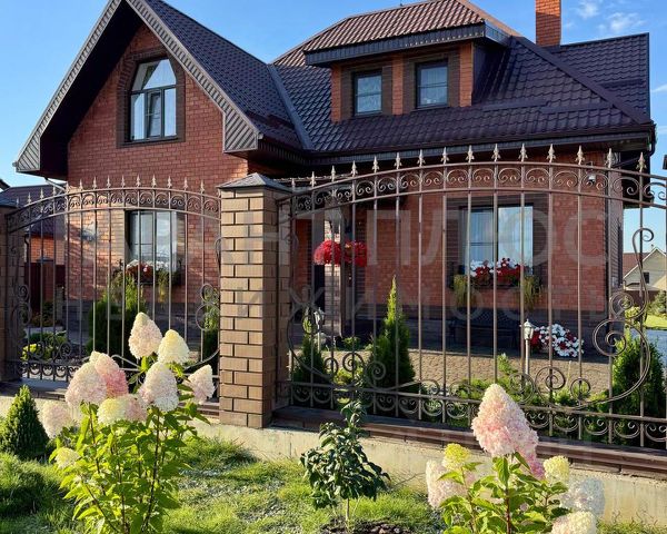 Земельный участок (10 соток) правильной формы, огорожен капитальным забором с элементами художественной ковки. Двое автоматических въездных ворот.