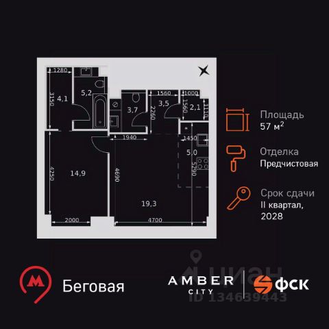 2-комн. апарт. · 49,9 м² · 11/18 этаж