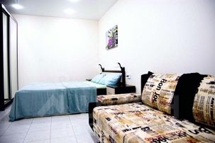 Спальные места 2+2 (2-х спальная кровать и 2-х местный диван).Базовая стоимость указана для проживания 1-2-х человек с 1 двухспальным комплектом белья. Дополнительный гость на отдельном спальном месте- +400 руб/сутки.