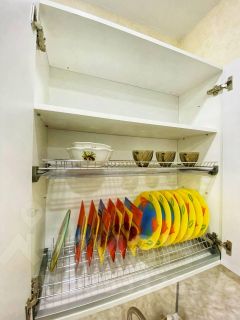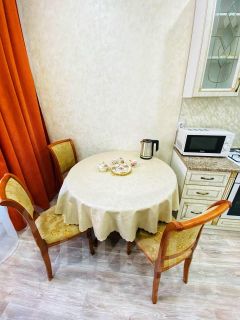 Квартира укомплектована всей необходимой мебелью и техникой: 3 раздельных спальных места (1 двуспальный диван, два раскладных кресла). Максимальная вместимость 4 человека. В апартаментах новый ремонт. Все квартиры проходят кварцевание при каждой уборке. К услугам гостей: бесплатный Wi-Fi и Цифровое ТВ, чистое и отглаженное постельное белье и полотенца, средства гигиены, утюг, гладильная доска, сушилка для белья, фен, стиральная машинка автомат, микроволновая печь и электрический чайник. На кухне имеется все необходимое для приготовления и употребления пищи: кастрюли, сковородки, тарелки, вилки, ложки, стаканы и бокалы.