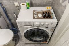 ванна или душевая кабина, стиральная машина, полотенца, шампунь, мыло, фен, сушилка, гладильная доска.