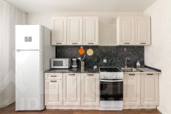 плита, духовой шкаф, холодильник, микроволновая печь, чайник, набор посуды;