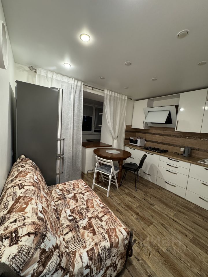 В квартире есть всё необходимое для комфортной жизни. На кухне площадью 9 кв. м установлена современная мебель и техника: холодильник, кондиционер, телевизор и стиральная машина. В комнате также есть мебель, необходимая для вашего удобства. Санузел совмещённый, оборудован душевой кабиной, что добавляет удобства и функциональности.
