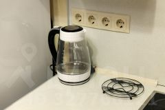 плита, духовой шкаф, холодильник, микроволновая печь, чайник, набор посуды;