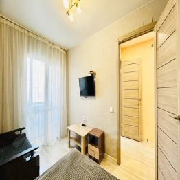 Предлагается уютная однокомнатная квартира, расположенная на четвертом этаже девятиэтажного здания. Квартира оборудована двумя кроватями и рассчитана на проживание четырех гостей. Внутри установлены необходимые бытовые приборы: электроплита, микроволновая печь, холодильник, стиральная машина, фен и утюг. Из мультимедийных удобств предусмотрены Wi-Fi, телевизор с кабельным и цифровым телевидением. Гостям предоставляется парковочное место. Допускается размещение с детьми.