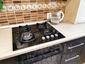 - Наши гости могут готовить на полностью оборудованной кухне с бытовой техникой и посудой. Есть плита, духовой шкаф, электрический чайник и холодильник.