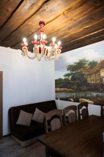 Интерьер дома Мельника оформлен в старорусском стиле, на стены нанесены фото полей и мельницы, а в архитектуре дома действительно есть мельница, она выступает в роли большого балкона с живописным видом.