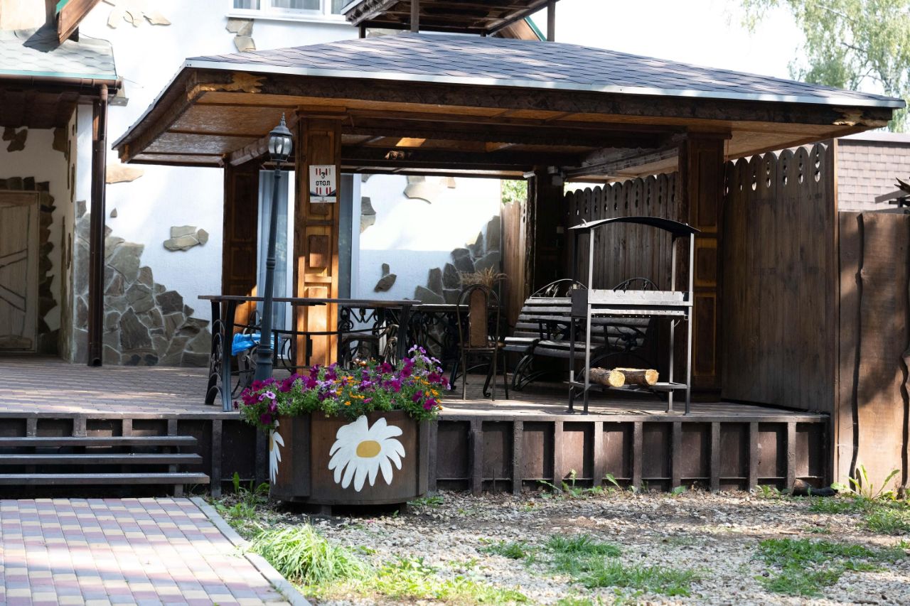 Собственная охраняемая стоянка авто. Большая летняя веранда для отдыха с барбекю-зоной, просторный кухонный и обеденный уголок, три спальни, здесь с комфортом разместится компания из 10 человек.