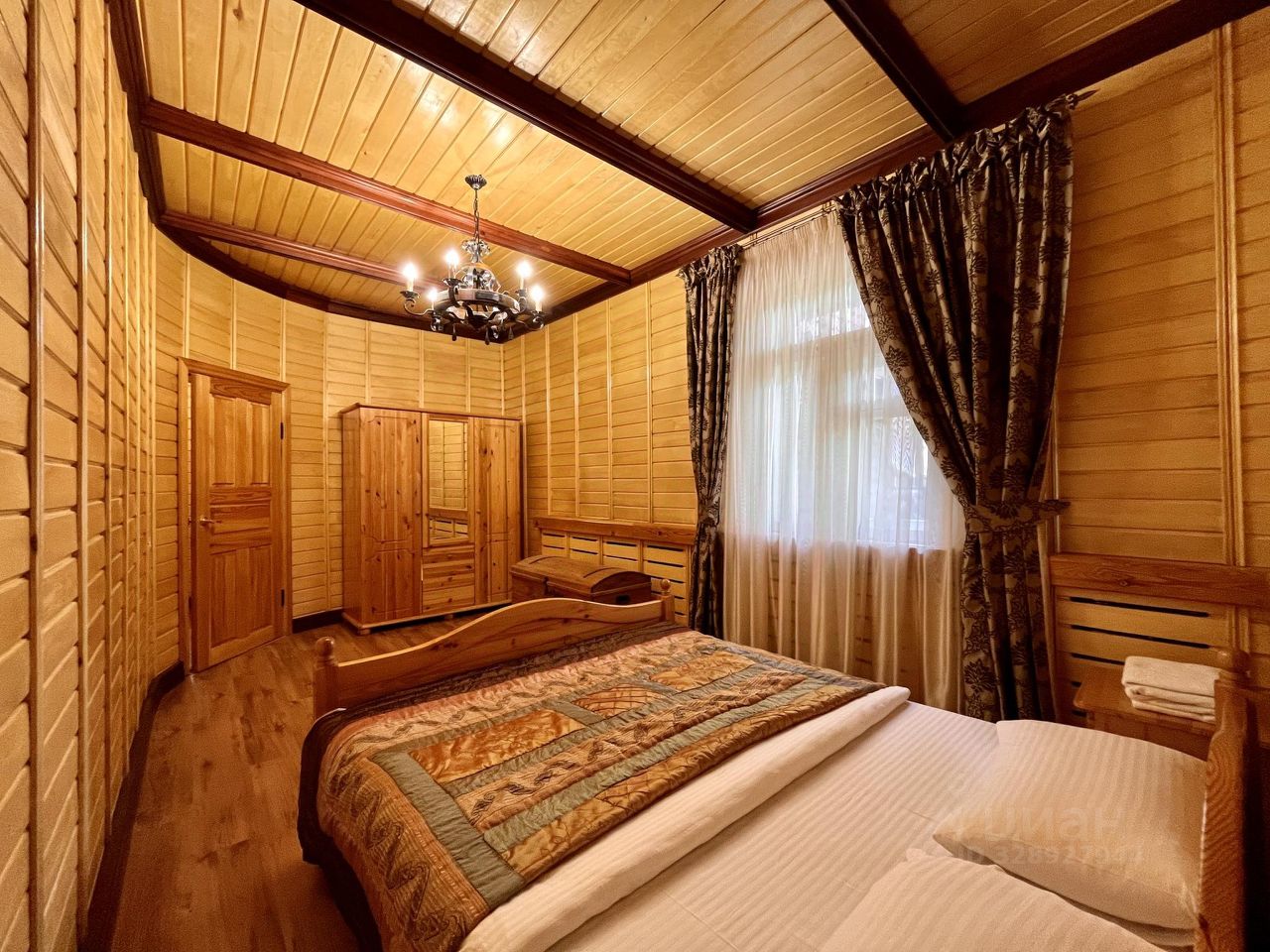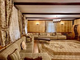 Дом с уютным интерьером в деревенском стиле оснащён тремя двуспальными кроватями и тремя диван-кроватями. В центре внимания — настоящая русская печь с лежанкой, которая создаёт атмосферу уюта и тепла. В доме три спальни, просторная гостиная идеально подходит для вечеринок, а из окон открывается живописный вид на сосновый лес и озеро, добавляющий спокойствия и гармонии с природой.