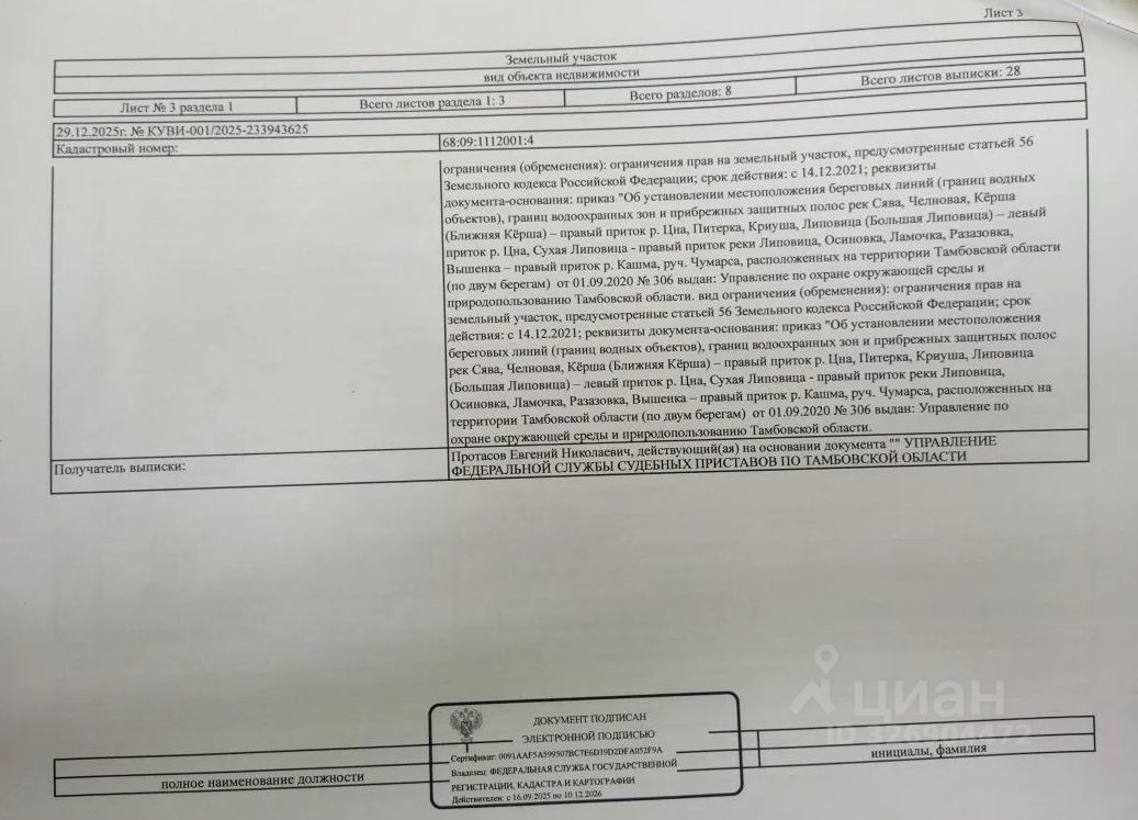 Земельный участок для животноводства, площадь 100000,00 кв. м, кадастровый номер 68:09:1112001:4, категория земель: земли населенных пунктов, вид разрешенного использования: для животноводства, адрес (местоположение) объектов: Тамбовская область, Моршанский район, с. Большие Кулики, в районе улицы Горюновка