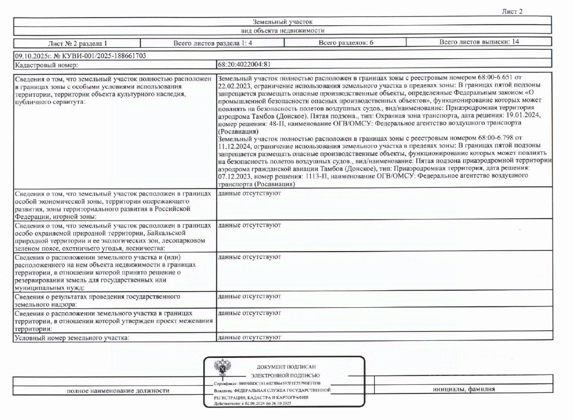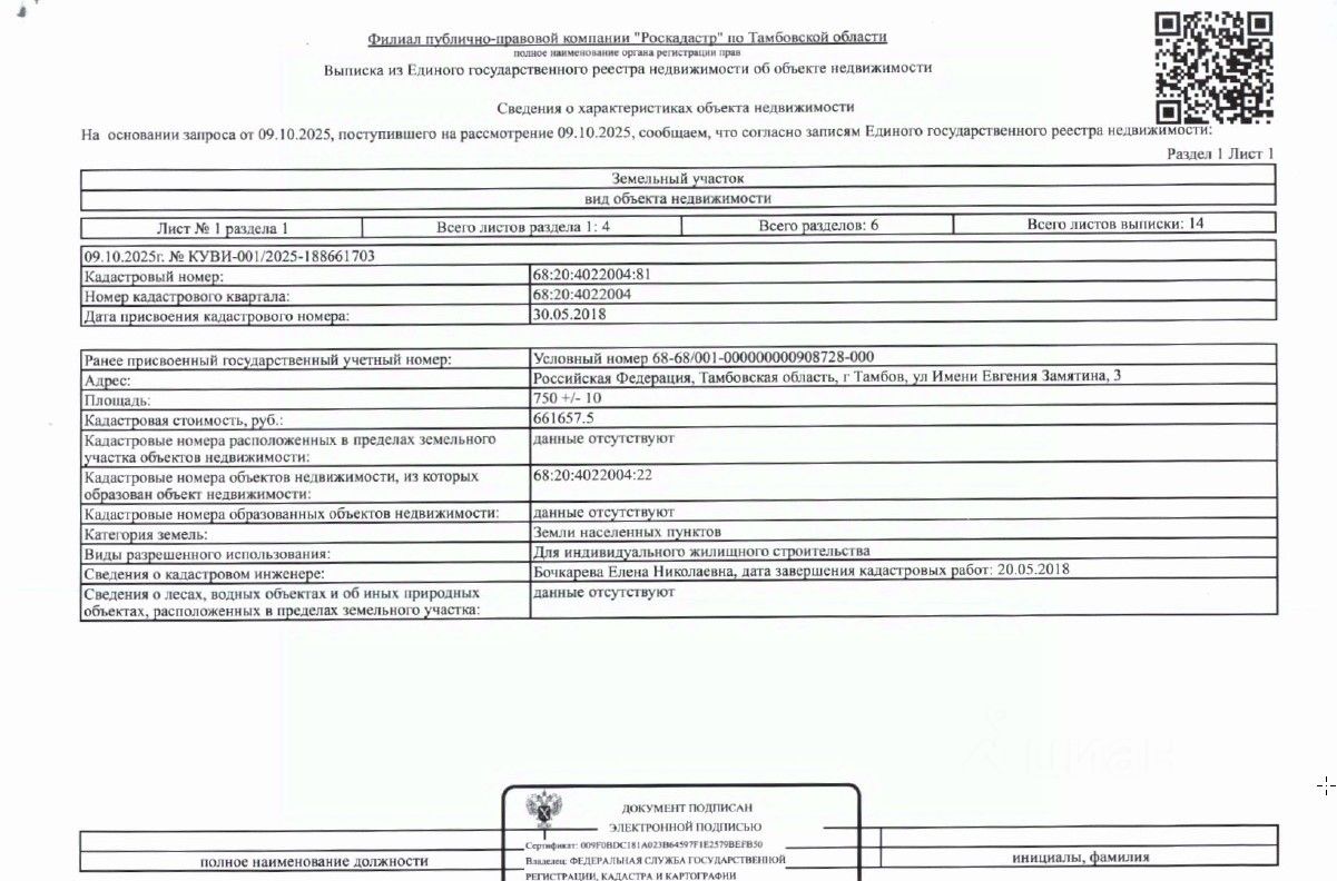 ЛОТ 5: Земельный участок, кадастровый номер 68:20:4022004:81, площадь 750 кв. м, категория земель: земли населенных пунктов, вид разрешенного использования: для индивидуального жилищного строительства, вид права: собственность. Адрес объекта: Тамбовская область, г. Тамбов, ул. Имени Евгения Замятина, 3