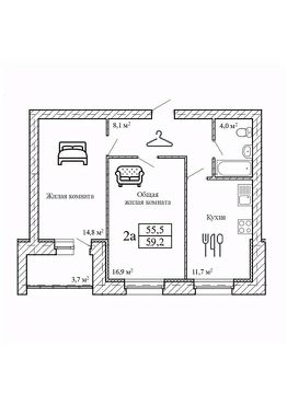2-комн. от 59,2 м²