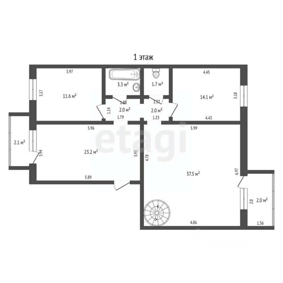 На 10м этаже размещены 3 комнаты площадью 12,4 кв. м., 14,1 кв. м., 23,2 кв. м., огромный зал площадью 37,3 кв. м., раздельный санузел и два балкона, выходящие на разные стороны дома.