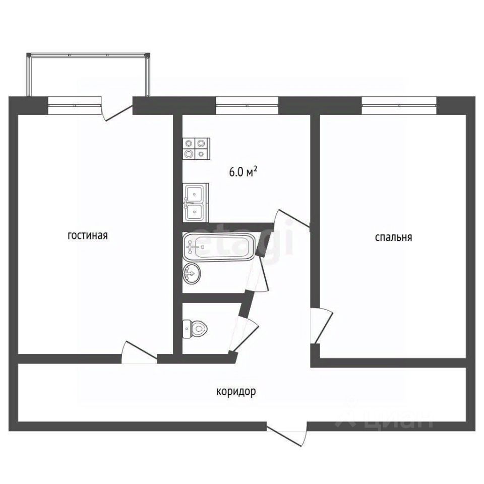 Квартира удобной планировки, общей площадью 44.6кв.м, без учета балкона. Просторная, светлая гостиная с выходом на застекленную лоджию, уютная спальня с нишей для организации дополнительного места для хранения или отдыха.