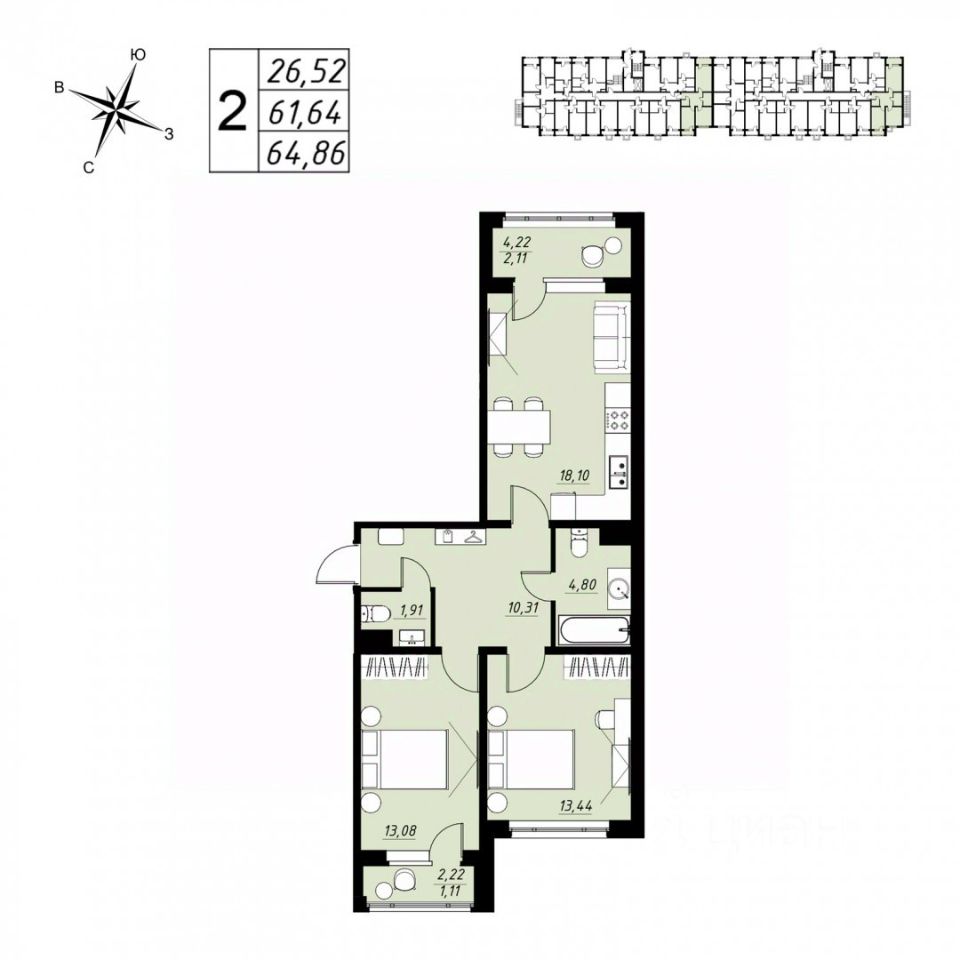 Арт. 107464217 Продается 2-х комнатная квартира в новом строящемся Жилищном комплексе ЖК Строганов. Квартира будет сдаваться с чистовой отделкой. Все материалы качественные, современный дизайн и уютные оттенки.