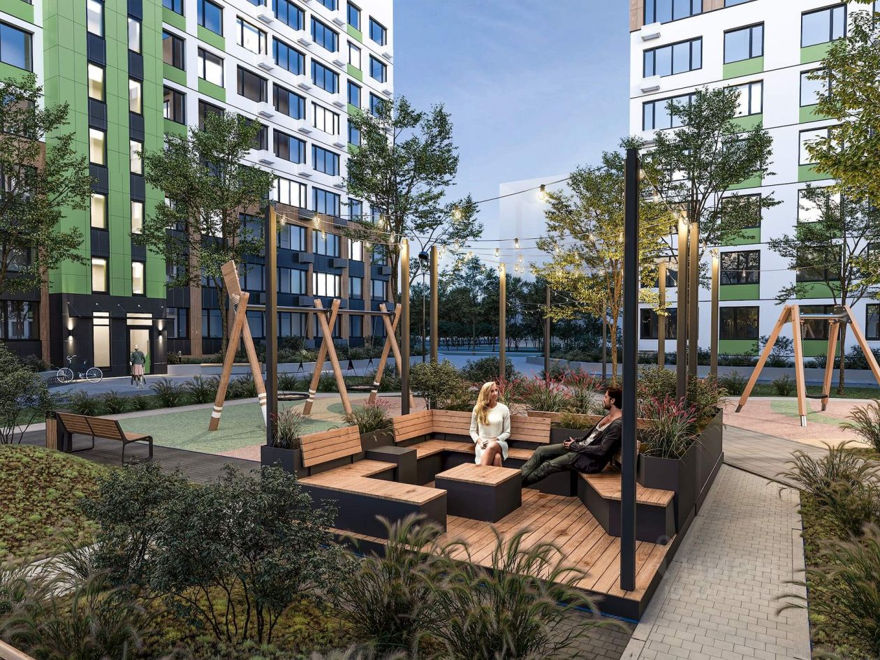 Рядом новая современная школа 2, три детских сада, магазин на территории ЖК, предусмотрена огороженная территория, с парковочными местами, своя котельная на жилой комплекс.