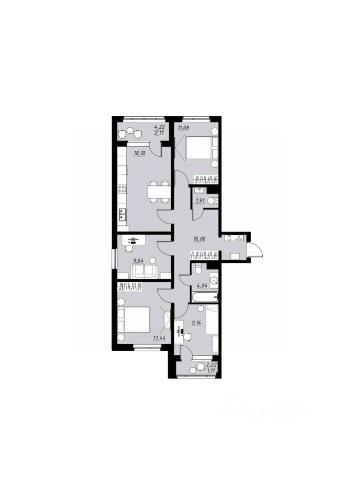Площадь кухни18,1 м²