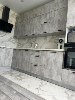 Кухня: кухонный гарнитур, холодильник,стол и стулья (по желанию покупателя).