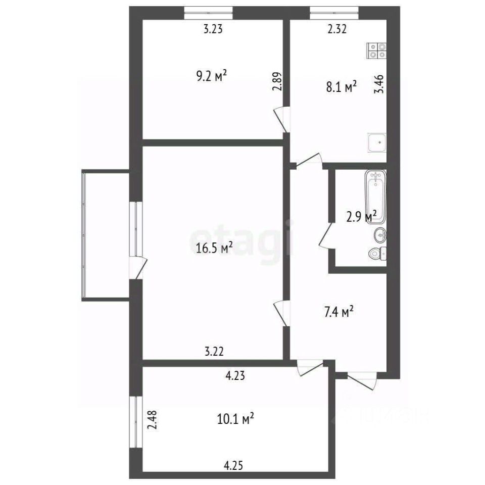 Светлая, теплая, просторная 3х-комнатная квартира площадью 54.2 кв.м в южной части города.