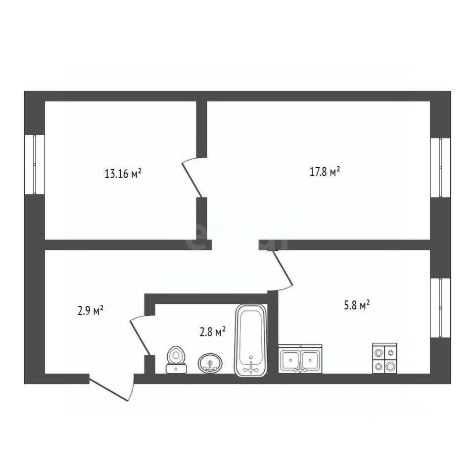 Площадь комнат 13 и 18 кв.м. Кухня - 6 кв.м.