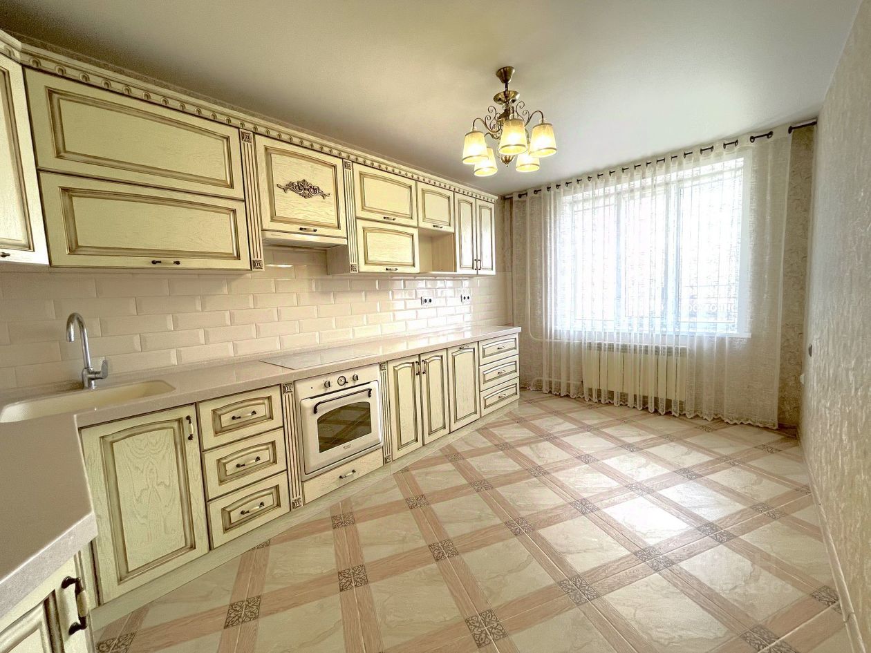 В подарок новым собственникам остаётся качественный,дорогой кухонный гарнитур с автодоводчиками.Для удобства и экономии времени установлена достойная посудомоечная машина.Столешница выполнена из камня,под заказ!Так же останется встроенная вытяжка,варочная панель и духовой шкаф.