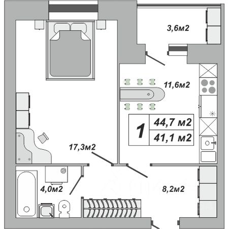 44,7 м²