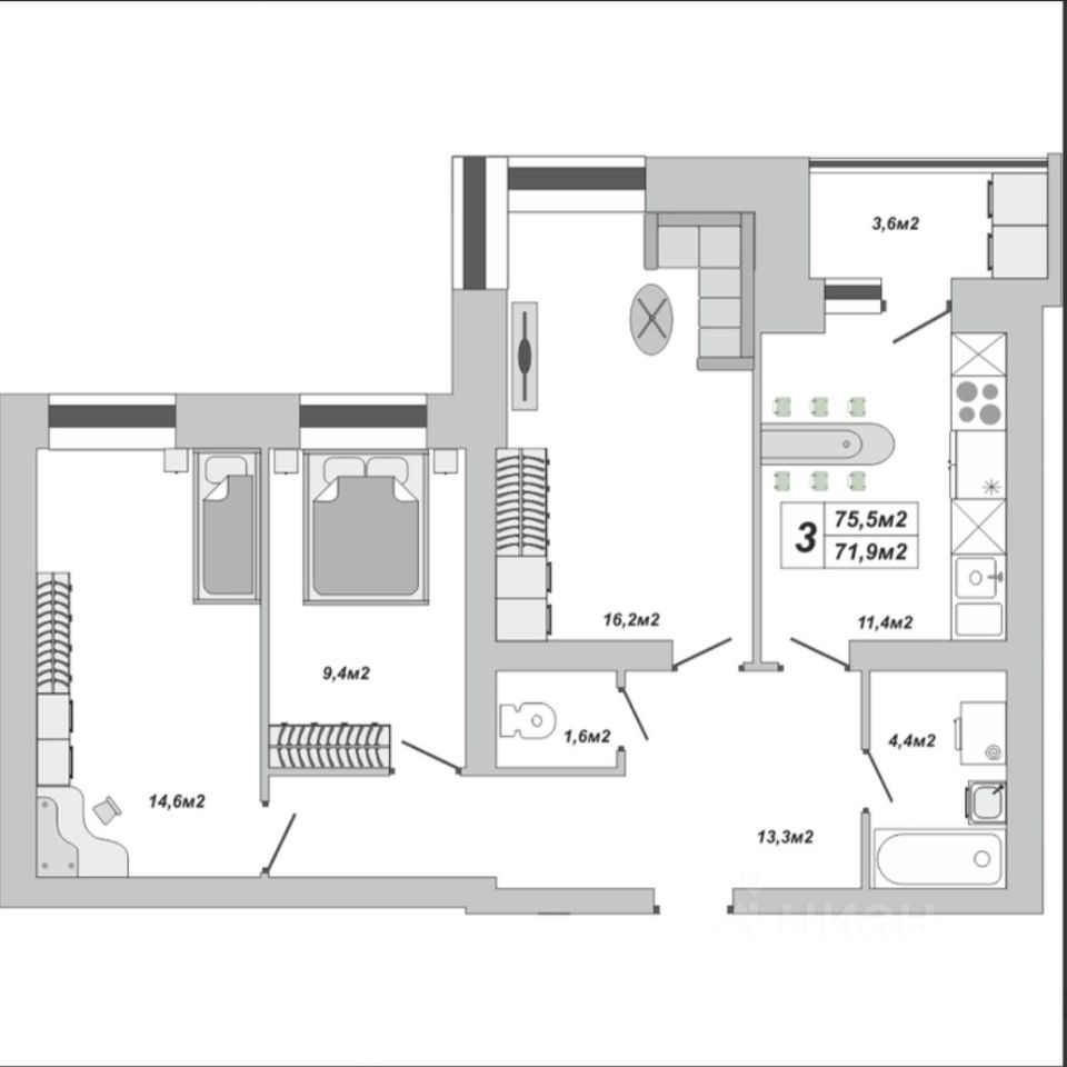 75,5 м²