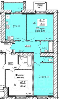 61,7 м²