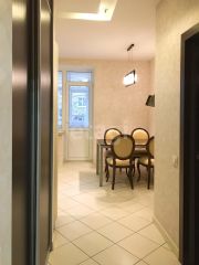 В квартире выполнен качественный дизайнерский ремонт, на полу в комнатах уложена паркетная доска, в прихожей зоне, коридоре, кухне и ванной комнате- плитка, на стенах декоративная штукатурка, в спальнях стены покрашены, ванная комната в плитке. В ванной комнате Итальянская сантехника бренда Devon & Devon. Квартира полностью меблирована Итальянской мебелью компании Юнион. На кухне установлена техника фирмы BOSCH. Пластиковые окна во всей квартире компании Rehau. В двух спальнях установлен кондиционер. В квартире есть две большие гардеробные. Свой большой тамбур на 3 квартиры.
