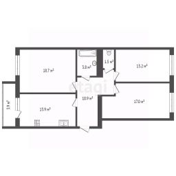 Кухня -13,90кв.м, с выходом на застекленную лоджию; гостинная 18,70кв.м; две спальни площадью 17,00кв.м и 13,20кв.м; санузел раздельный; лоджия -3,90кв.м.
