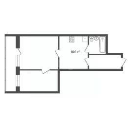 Общaя площaдь квaртиpы 34,7 кв.м.