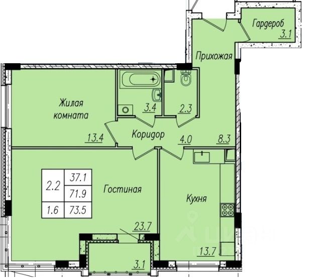 37,1 м²