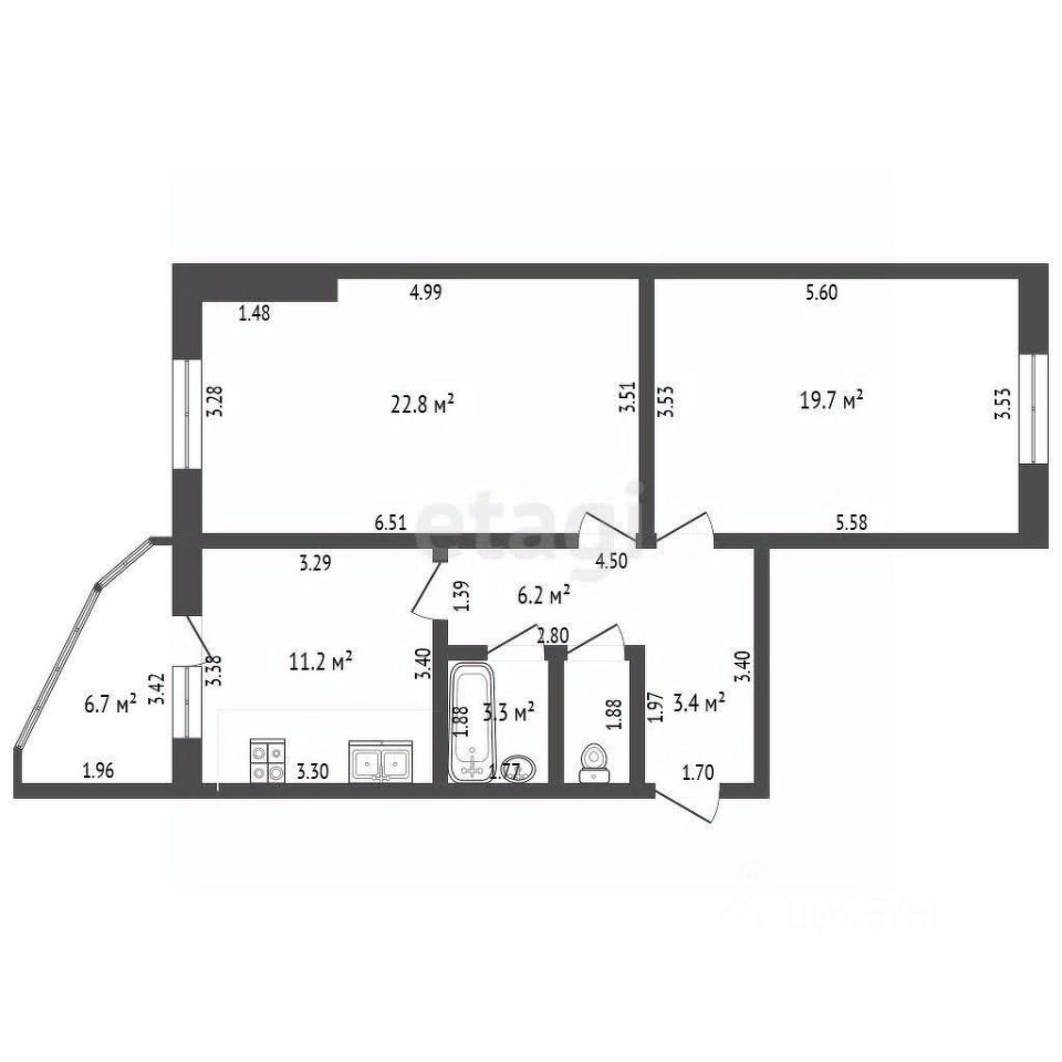 Изолированные комнаты 22,6 и 19,9 кв.м.
