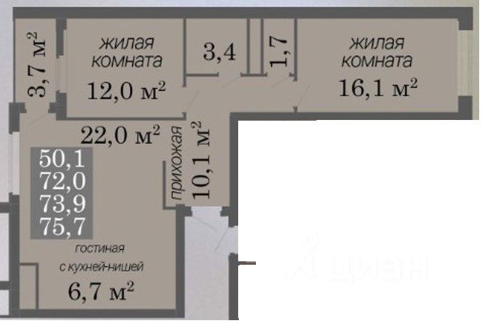 75,7 м²