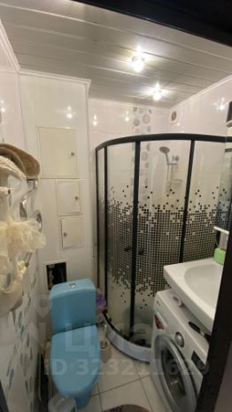 Санузел с душем, удобная раковина под которой стоит стиральная машина, что сильно экономит место.