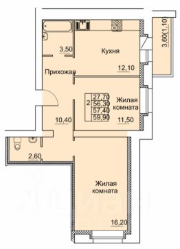 57,4 м²