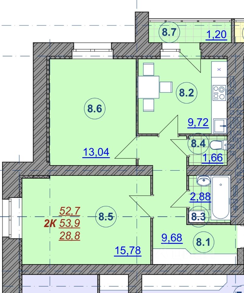 52,7 м²