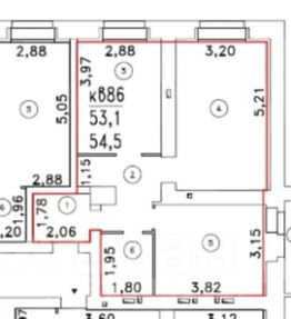 54,5 м²