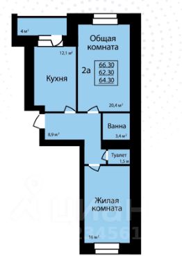 Продажа просторной двухкомнатной квартиры площадью 66.3кв.м в востребованном ЖК "Сокол" по адресу Савостьянова, 3.