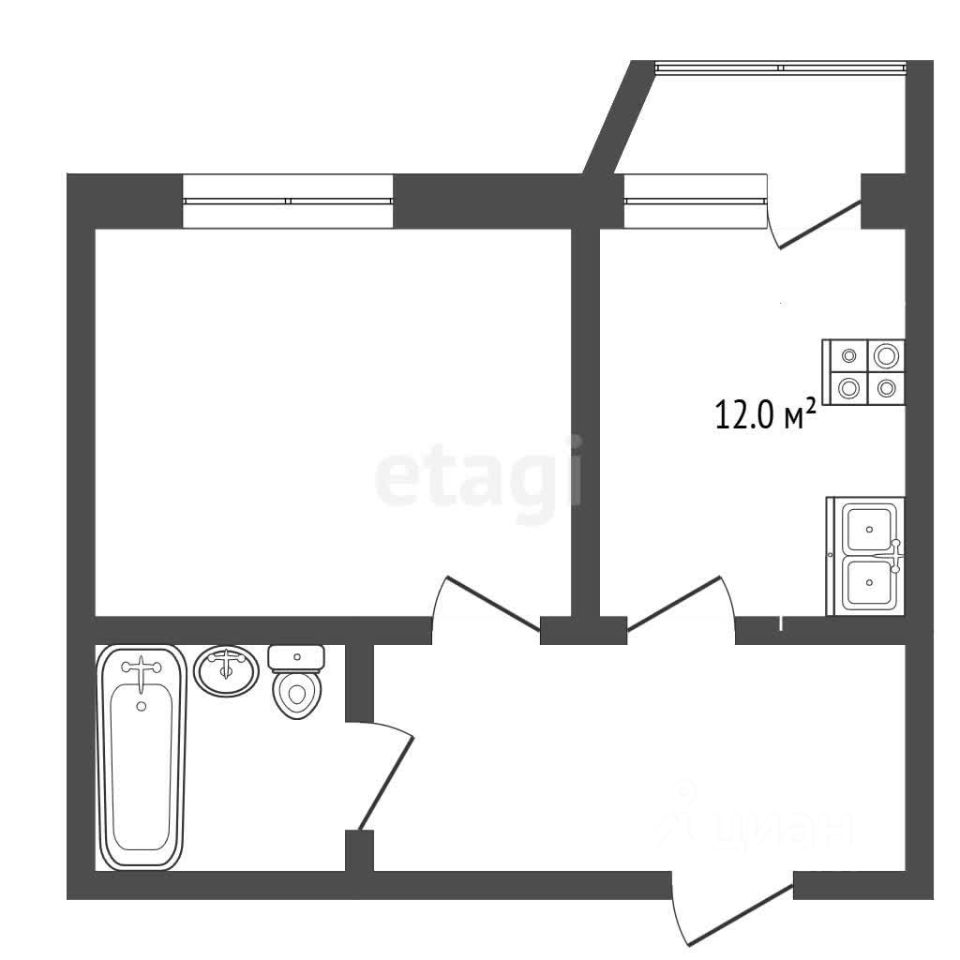 - Балкон с панорамным остеклением, выход на балкон из кухни. Окна выходят во двор.