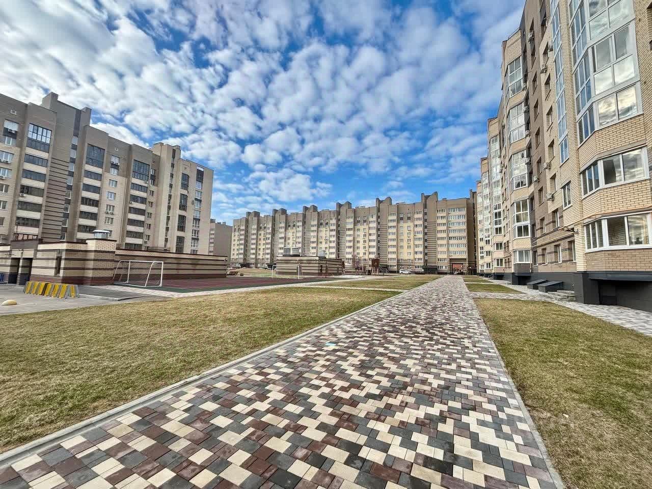 - Благоустроенный двор с многочисленными зонами для отдыха, спорта и детскими площадками.